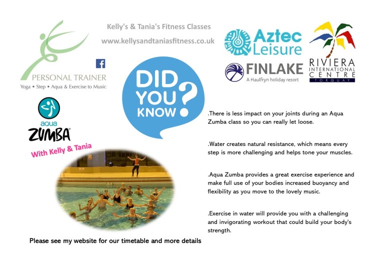 Aqua FIT at the English International Riviera Centre with Kelly – Tuesday Evenings at 7.00 pm and Thursday Mornings at 9.45 am.
